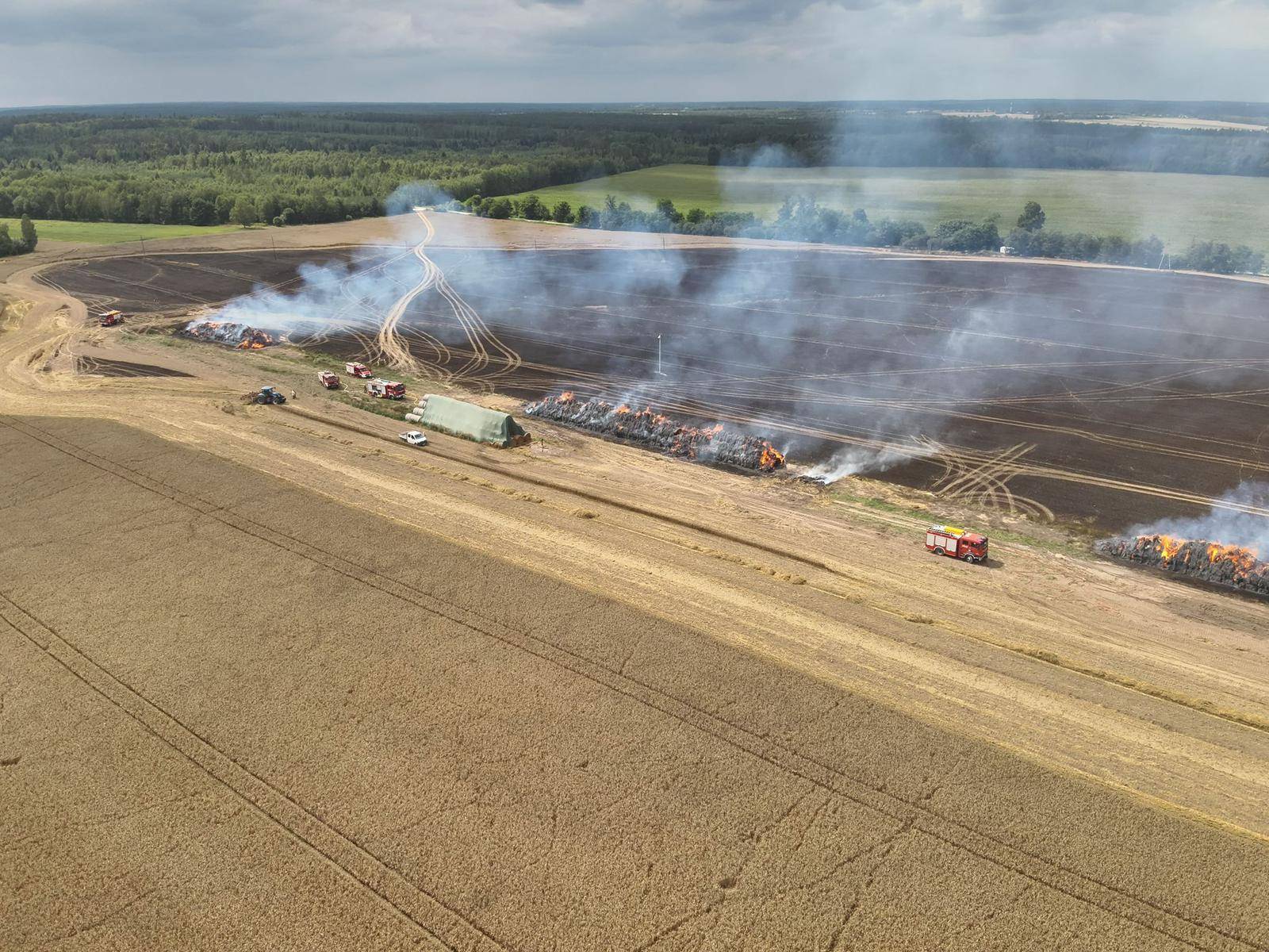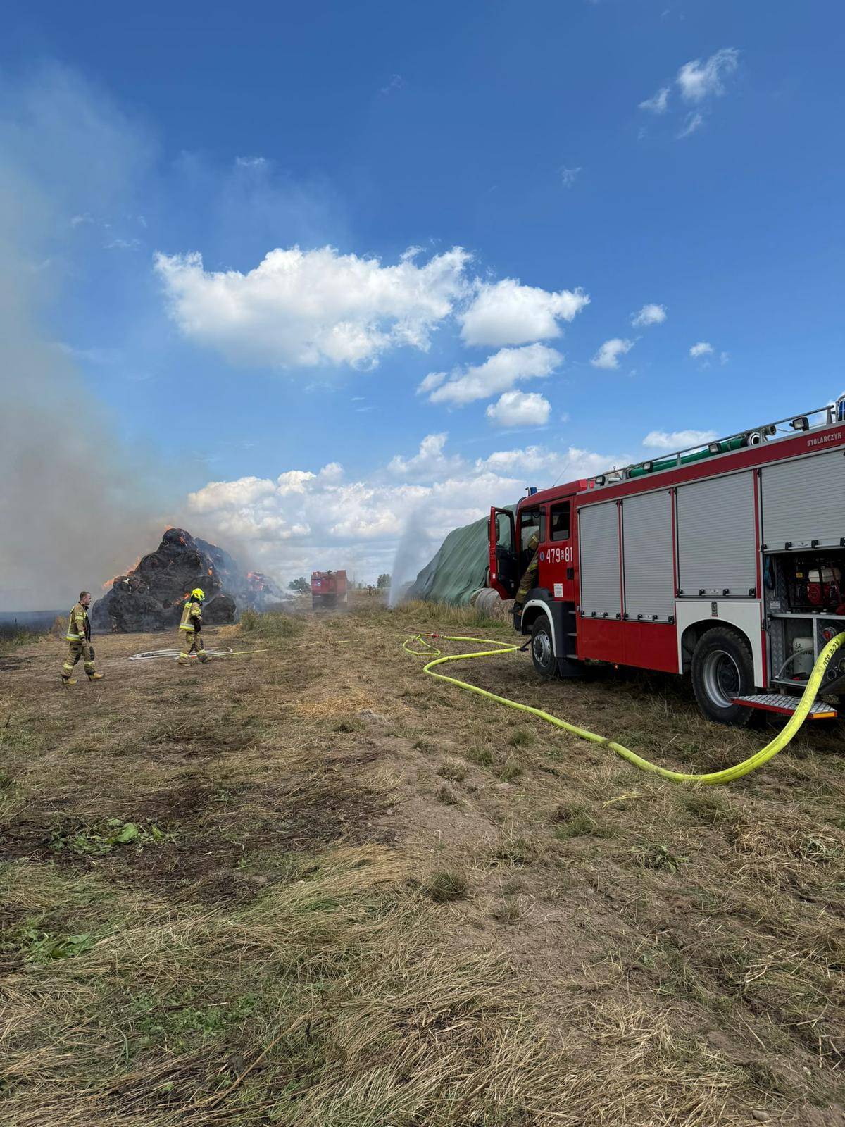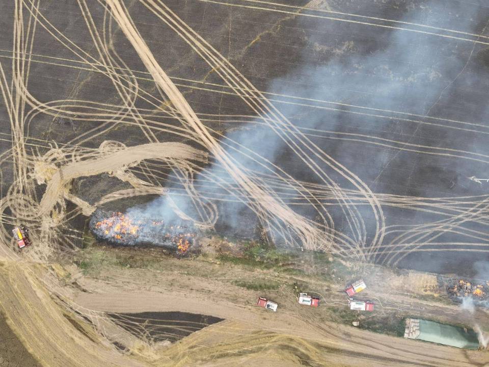 Obecnie sytuacja jest opanowana, a służby prowadzą kontrolowane wypalanie pozostałości balotów. Trwa również dokładne dogaszanie pogorzeliska, by zapobiec ponownemu rozprzestrzenieniu się ognia.