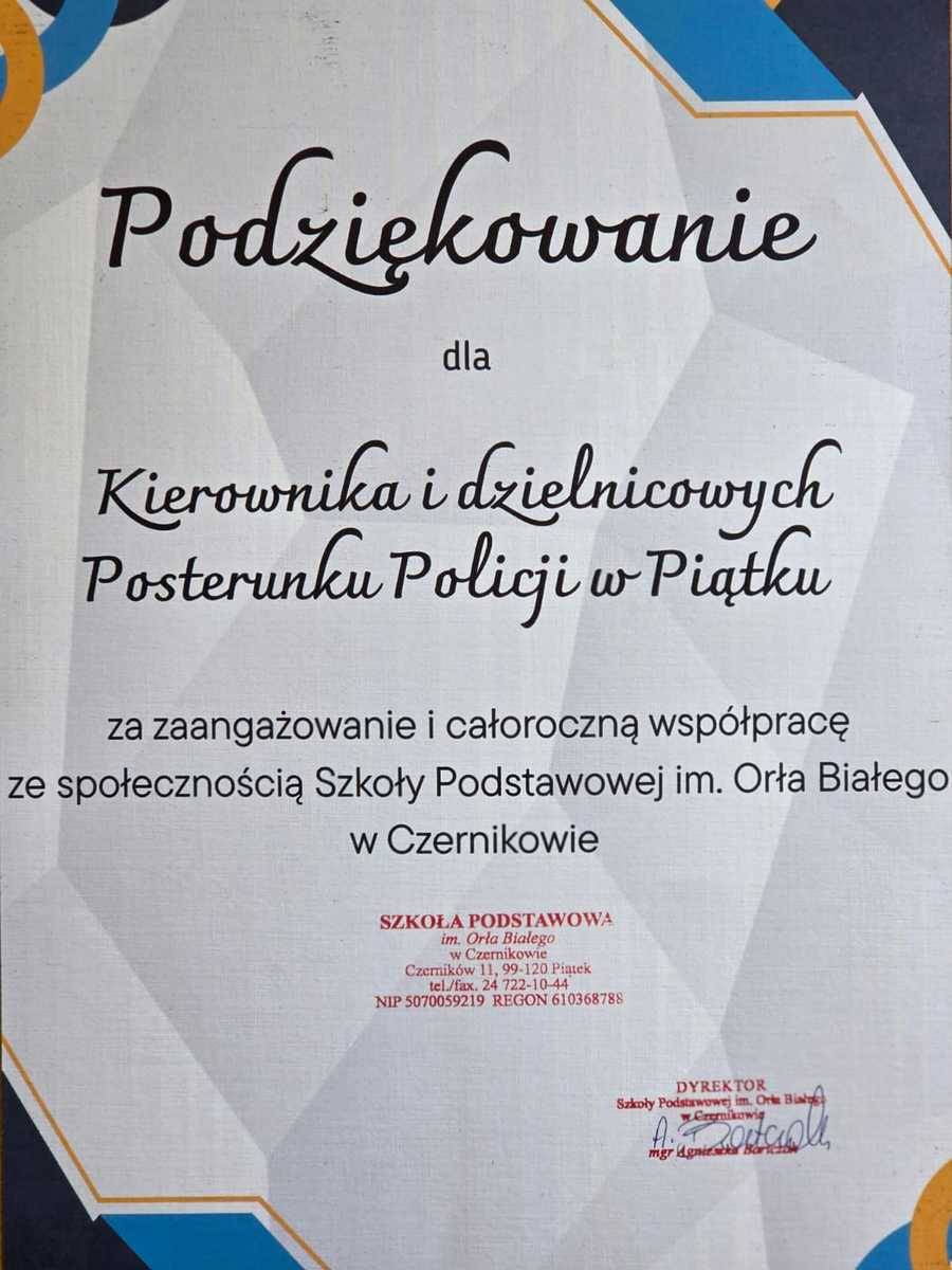 Zanim uczniowie rozpoczną letni wypoczynek, dzielnicowi z Piątku odwiedzili szkołę w Czernikowie, by przypomnieć im, jak zadbać o bezpieczeństwo w czasie wakacji.