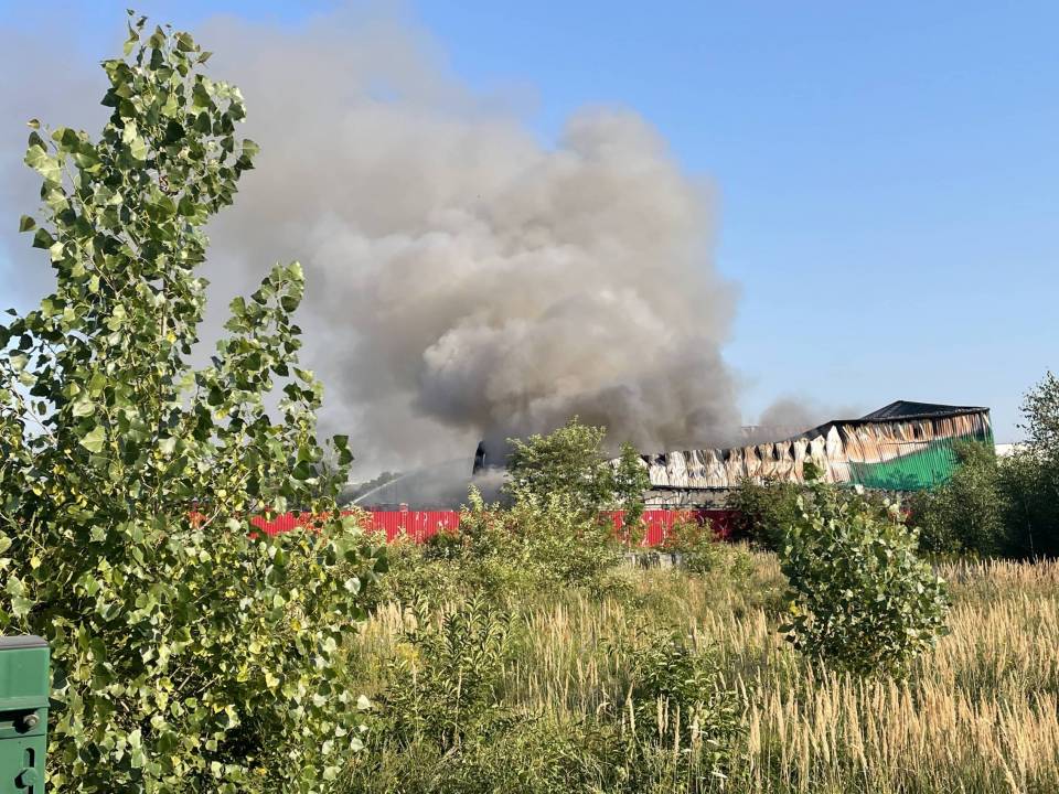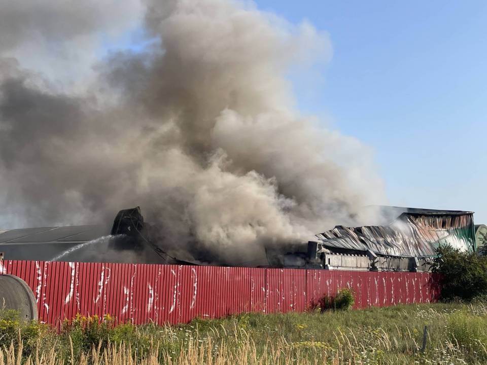 Potężny pożar hali z elektrośmieciami w Bogumiłowie. Płonie kilkaset ton odpadów [Foto, wideo]
