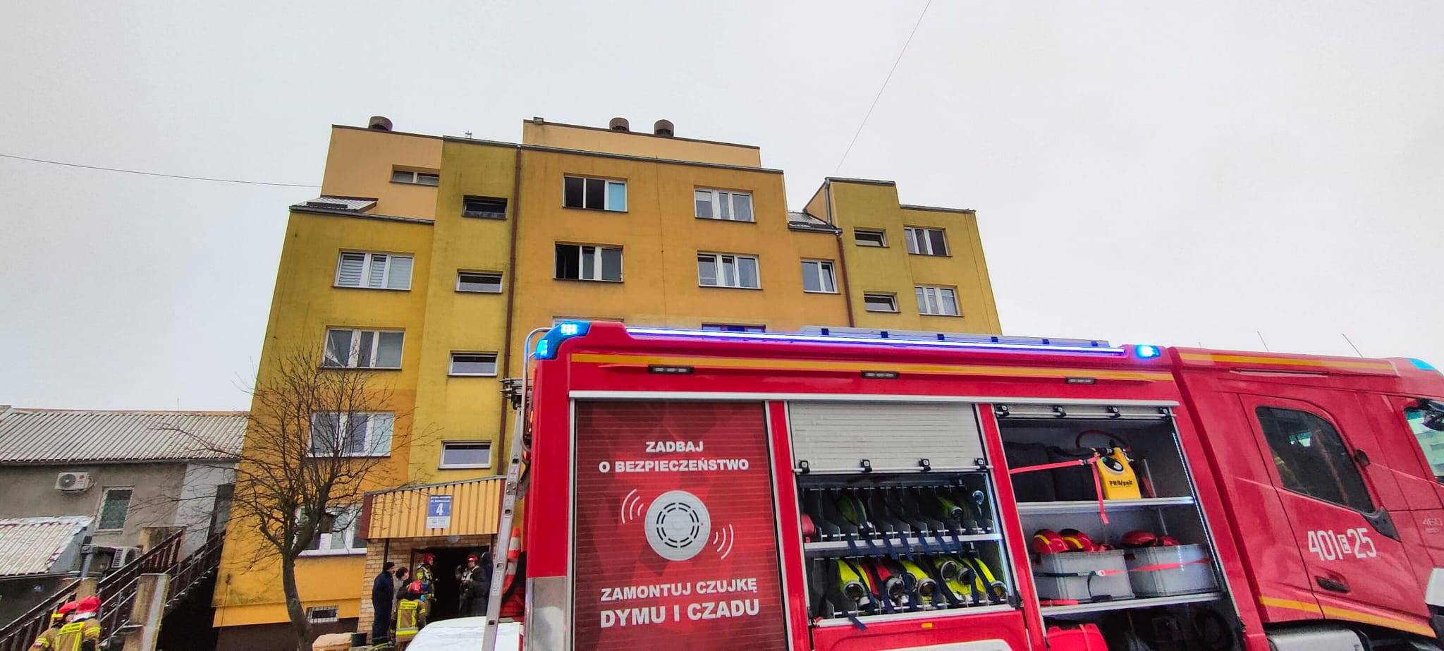 - Pokój dzienny był cały objęty ogniem, było bardzo duże zadymienie, a gęsty dym wydobywał się przez wszystkie możliwe otwory okienne, w tym także na klatkę schodową - dodaje Stefanek.