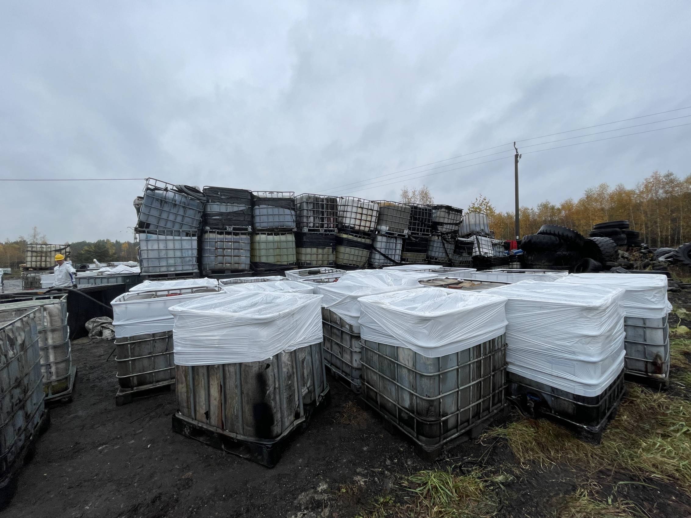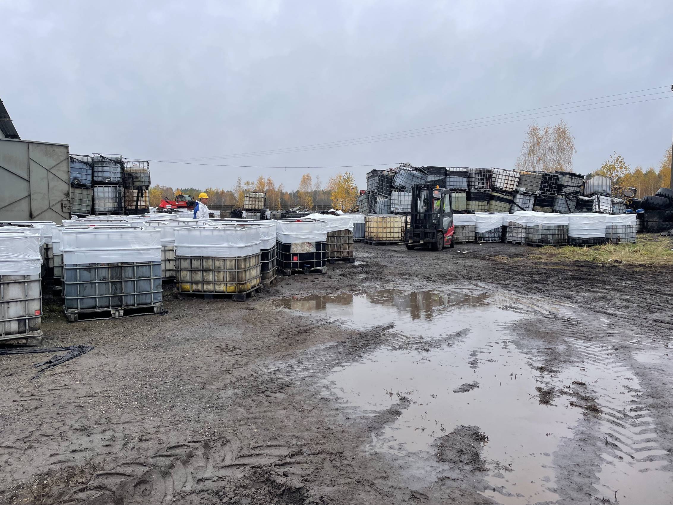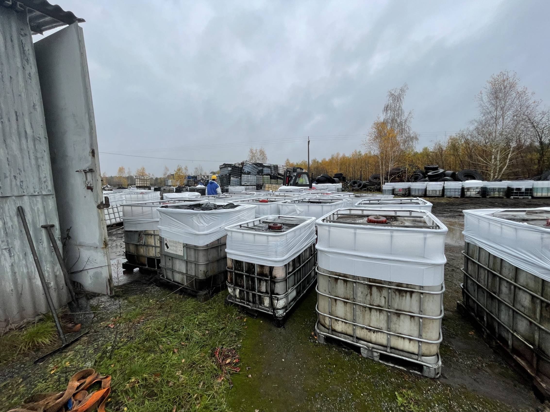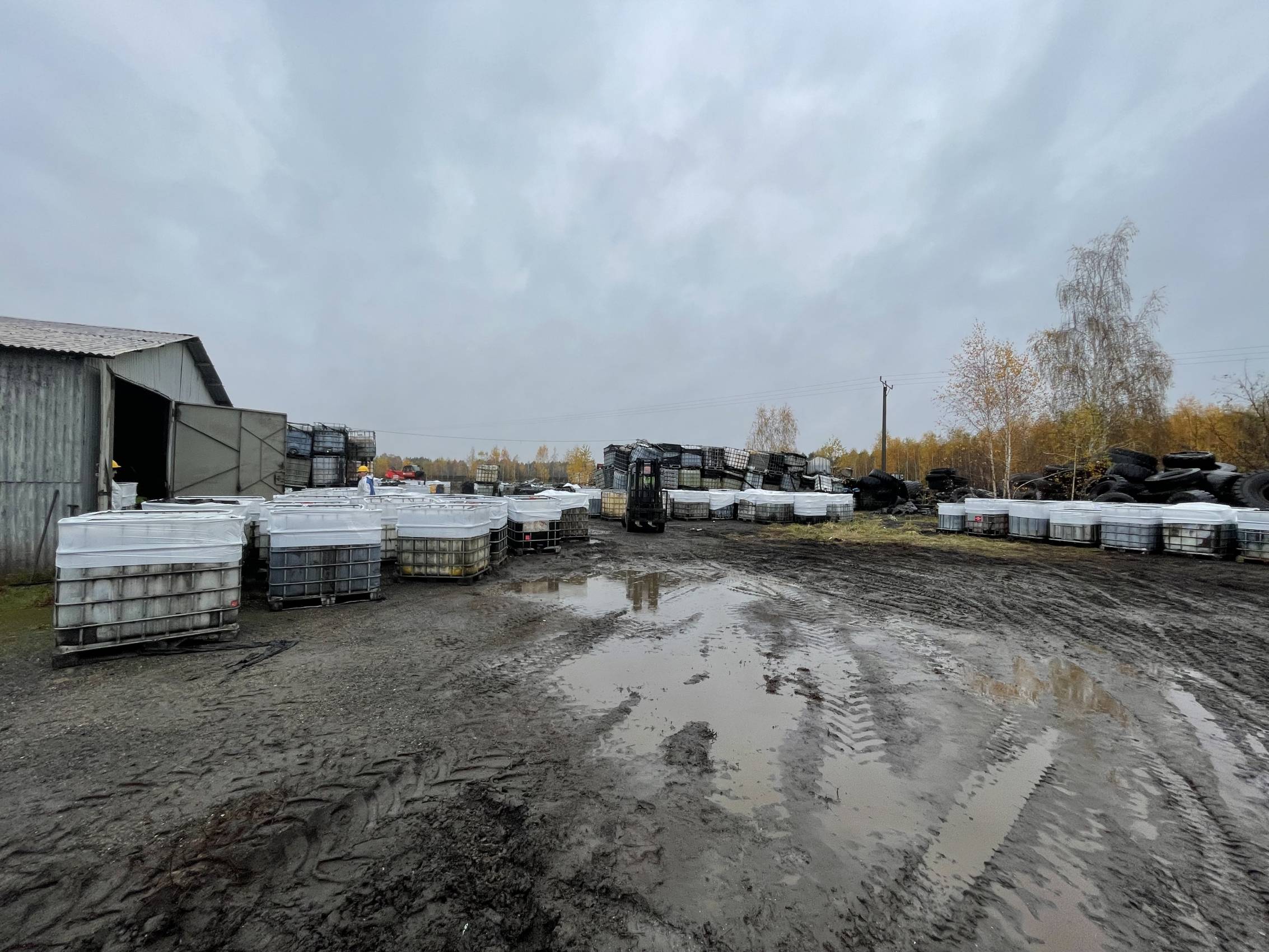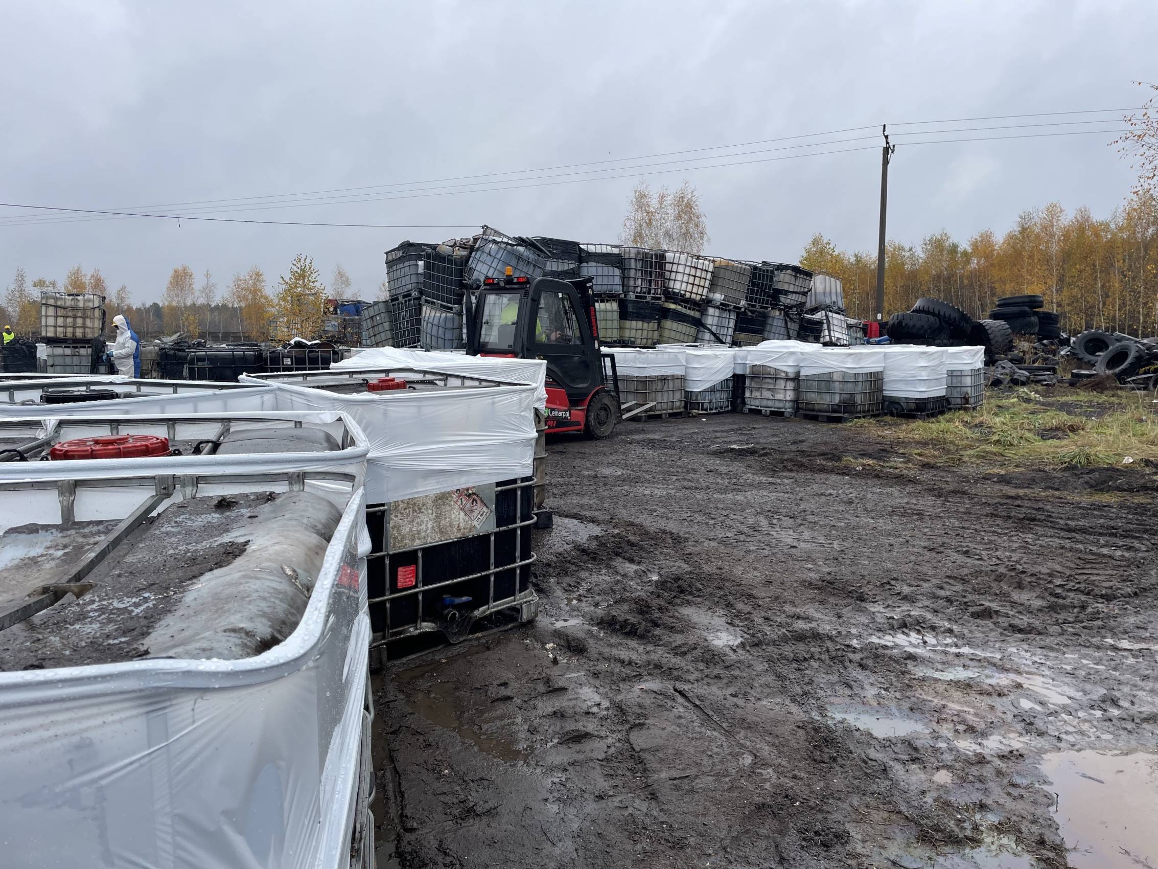 W Chabielicach rozpoczął się kolejny, kluczowy etap prac związanych z usuwaniem niebezpiecznych odpadów. W poniedziałek, 3 listopada, ze składowiska odjechało już kilka transportów z mauzerami zawierającymi substancje niebezpieczne – w momencie naszej obecności był to trzeci konwój. To początek intensywnej akcji, która ma doprowadzić do całkowitego oczyszczenia terenu.