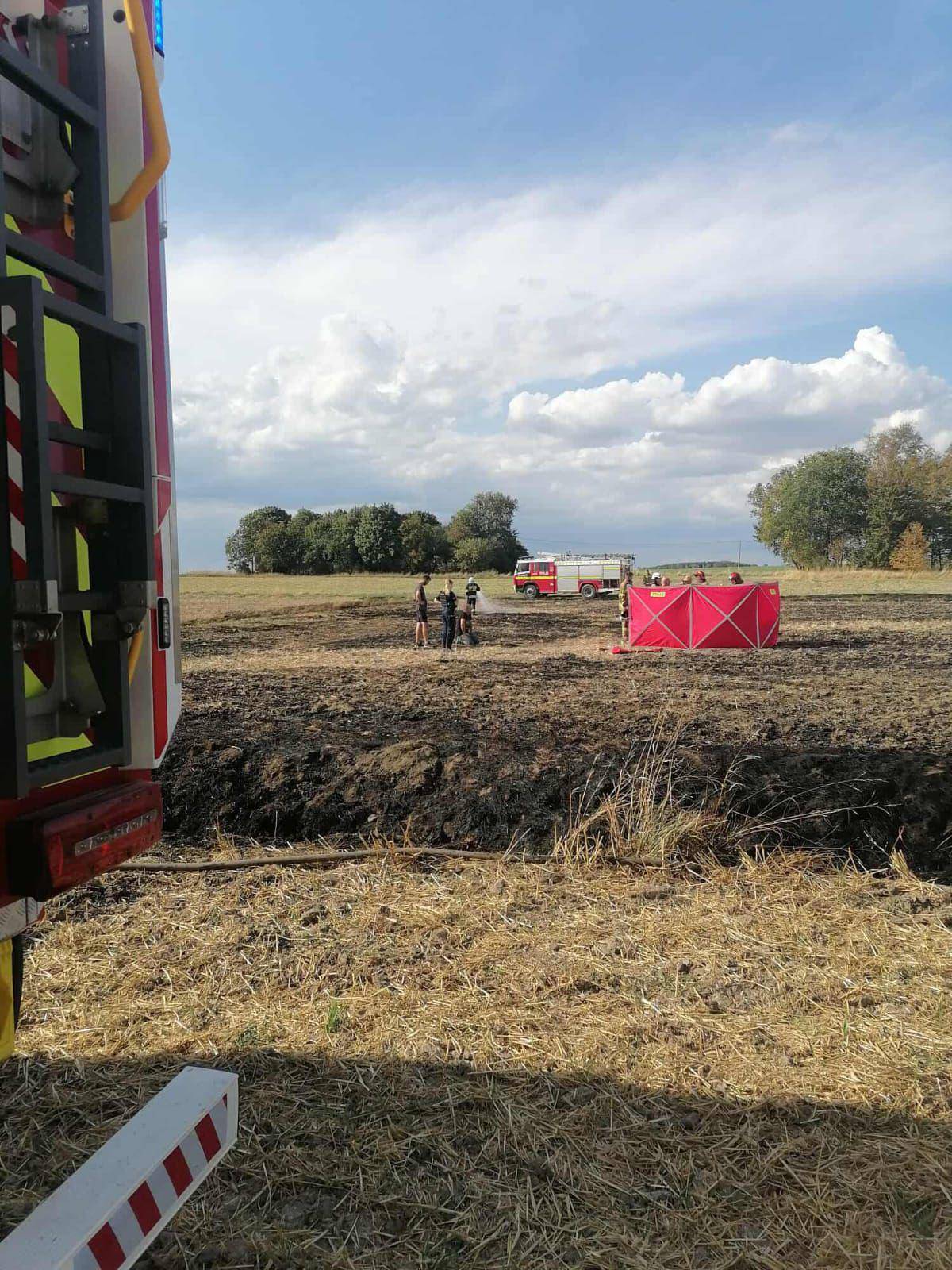 Do tragicznego w skutkach pożaru doszło we wtorek na jednym z pól w okolicach miejscowości Ożarów w powiecie wieluńskim. O godzinie 15.04 strażacy zostali wezwani do pożaru ścierniska. Ogień objął obszar około 4000 metrów kwadratowych.