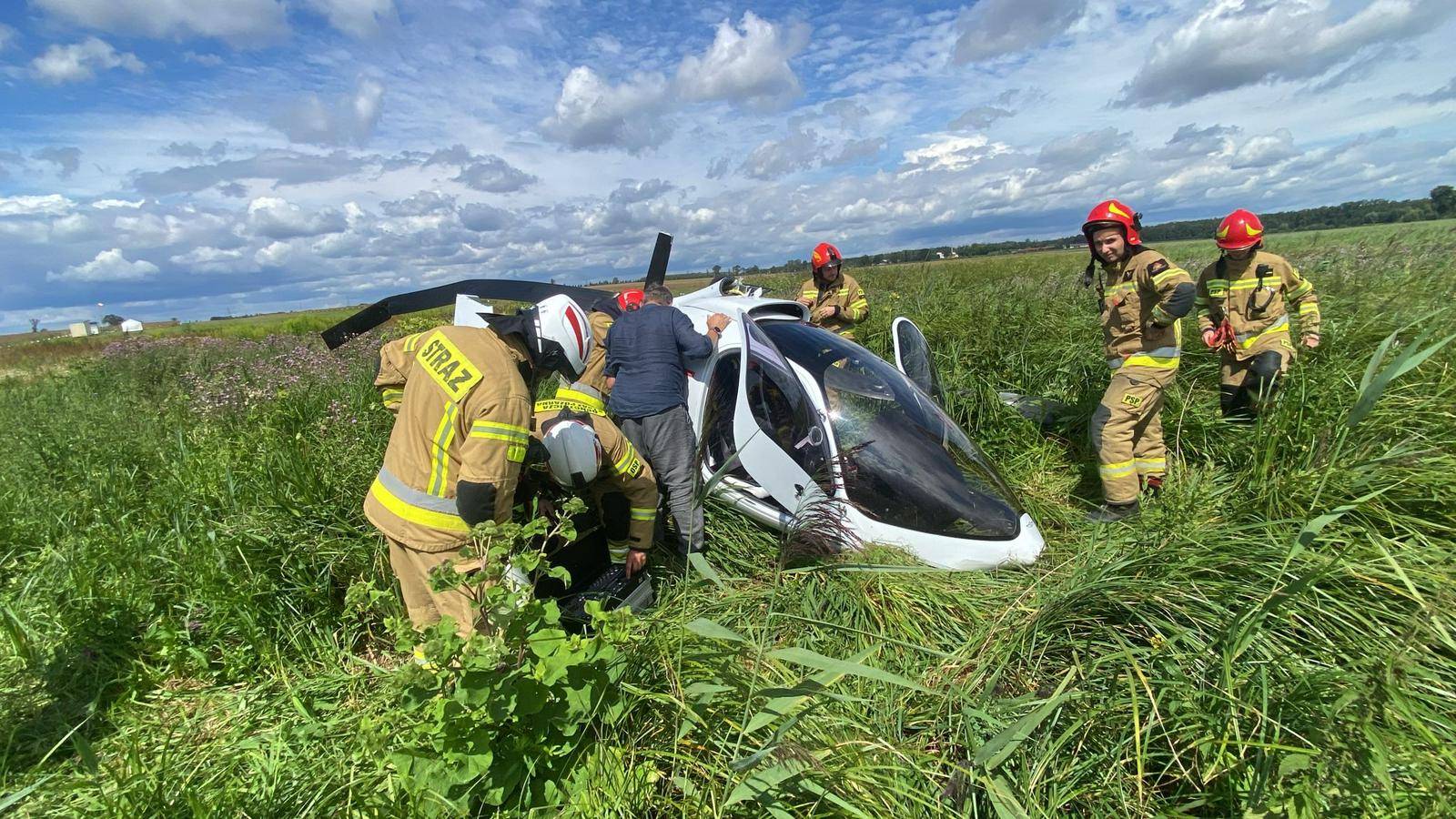 Strażacy w czasie działań odłączyli akumulator w rozbitym wiatrakowcu. W czasie zdarzenia nie doszło do wycieków paliwa - zaznaczył brygadier Jędrzej Pawlak z Komendy Wojewódzkiej Państwowej Straży Pożarnej w Łodzi.