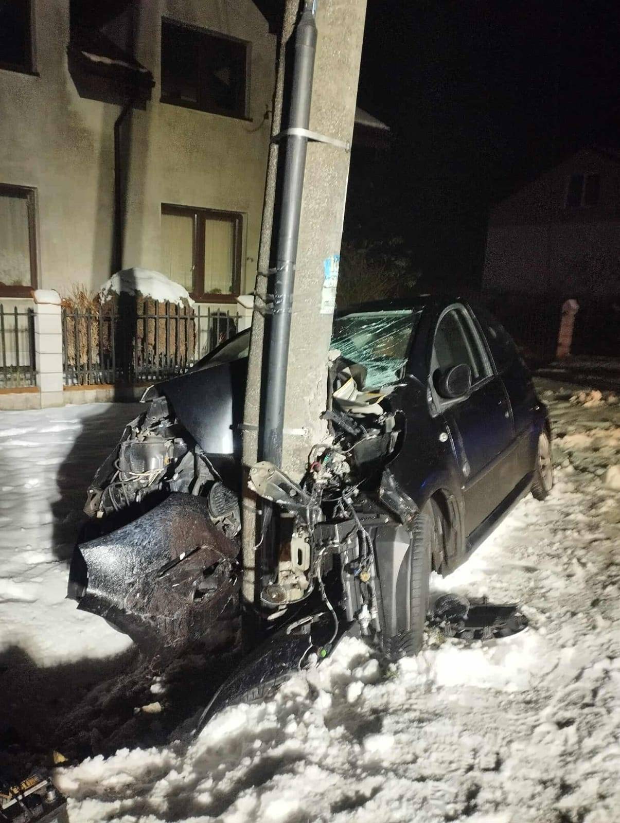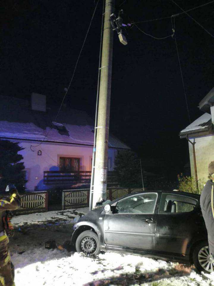 Wypadek w miejscowości Polesie. 19-latka uderzyła w słup energetyczny