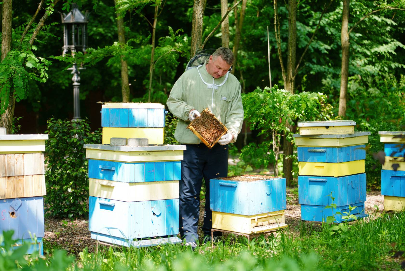 – Pszczoły to taka działalność po godzinach, w międzyczasie – żartuje, ale pszczoły traktuje bardzo poważnie. W ocenie lekarza weterynarii, pasieka Na Wzniesieniach Łódzkich jest jedną z lepiej utrzymanych. Pan Piotr bardzo dba o swoje rodziny, regularnie objeżdża ule i… rozmawia z pszczołami. – Tak, rozmawiam z psiulkami, cały czas, a najczęściej jak mnie żądlą – przyznaje ze śmiechem.