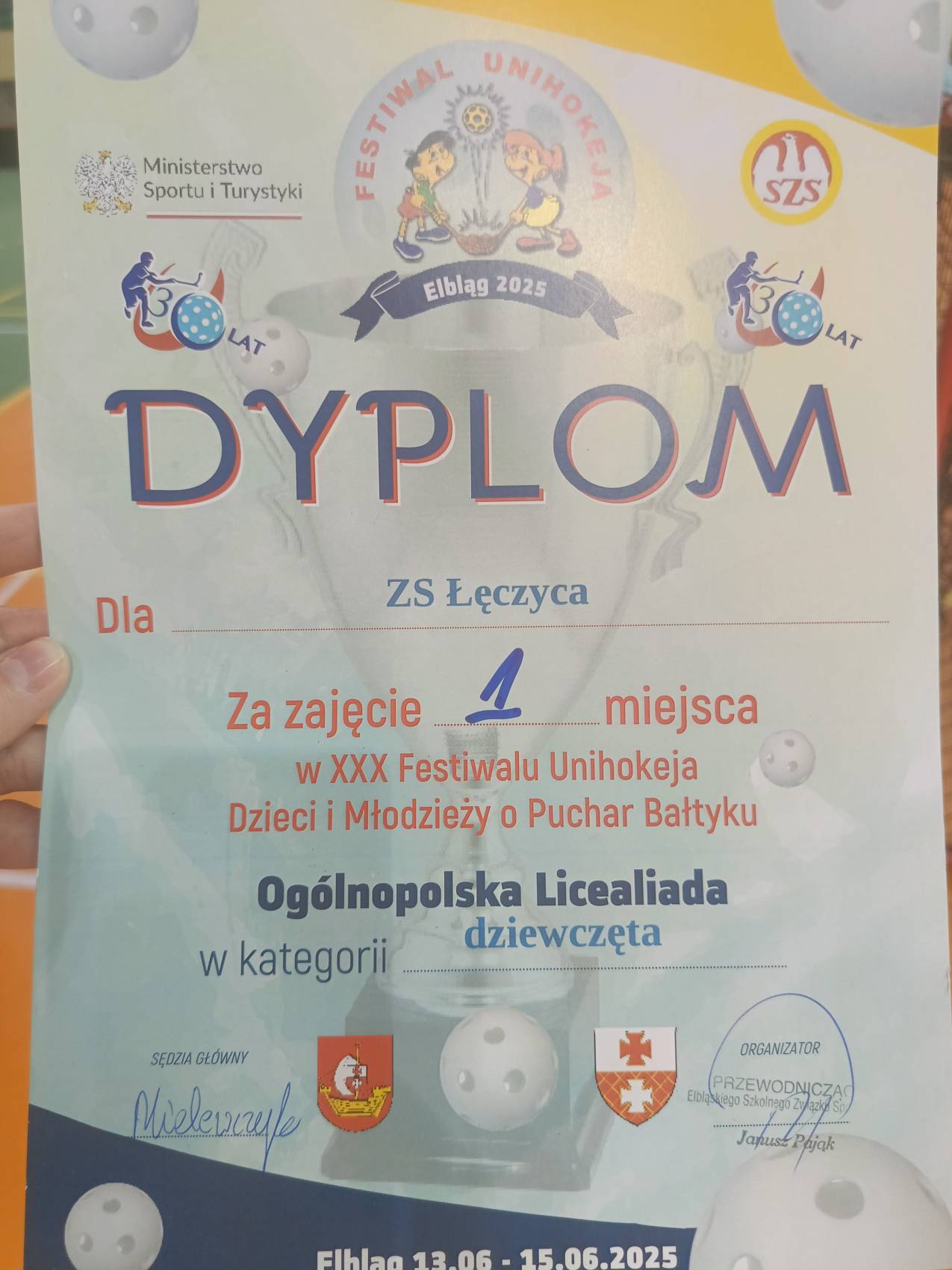 W dniach 13–15 czerwca 2025 roku Elbląg stał się stolicą unihokeja za sprawą XXX Festiwalu Unihokeja, Ogólnopolskiej Licealiady. W rywalizacji dziewcząt i chłopców udział wzięli najlepsi licealiści z całej Polski. To właśnie żeńska drużyna z Zespołu Szkół im. Jadwigi Grodzkiej pokazała klasę, wygrywając turniej i zdobywając złoty medal.